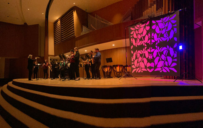 Illuminated Revetment is a cut paper and LED light project that is the result of a collaboration between me and Carey Roberson. The work was produced in response to a request that an artwork be made for a concert, specifically for A Song for Japan by Steven Verhelst, which would be part of the program. The Chamber Ensembles Concert took place on November 17, 2022, at Ouachita Baptist University.